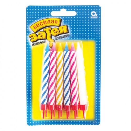 Праздничные свечи для торта, комплект 12 шт., с подставкой, 8,5 см, в блистере, 1502-0182