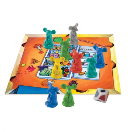 Описание: Игра способна развлечь самых маленьких игроков. Игрокам надо бросать кубик с цветными сторонами и картинками и действовать! Выпал цвет – скорее хватай мышь такого же цвета. Можно и у другого игрока забрать. Выпал сыр – скорее бери любого мыша с поля. Выпала кошка – начинается самое интересное – мыши всех игроков убегают к соседу! И клетка – игрок возвращает одну мышь обратно на поле.