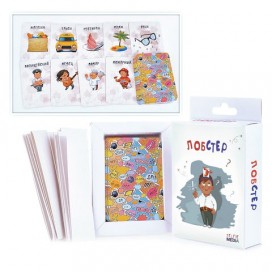 Описание: "Лобстер” – игра от молодого отечественного бренда Selfie Media уже зарекомендовавшего себя на рынке настольных игр. В начале игры все участники берут себе из колоды карту и закрепляют на лбу. Суть игры – с помощью простых вопросов другим участникам понять, что изображено на вашей карте.