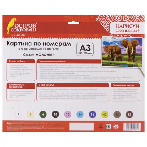 Картина по номерам А3, ОСТРОВ СОКРОВИЩ 'СЛОНЫ', С АКРИЛОВЫМИ КРАСКАМИ, картон, кисть, 661630