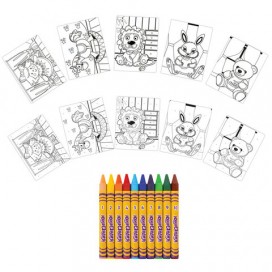 1 лист с перечнем цветов восковых мелков и образцами картинок.