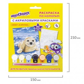 Раскраска по номерам А5, ЮНЛАНДИЯ 'В АРКТИКЕ', С АКРИЛОВЫМИ КРАСКАМИ, на картоне, кисть, 661603