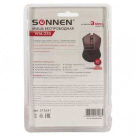 Мышь беспроводная SONNEN WM-250Br, USB, 1600 dpi, 3 кнопки + 1 колесо-кнопка, оптическая, бордовая