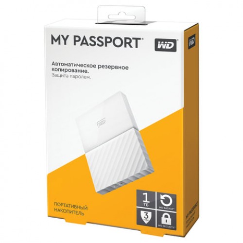 Диск жесткий внешний HDD WESTERN DIGITAL 'My Passport', 1 TB, 2,5', USB 3.0, белый, WDBBEX0010BWT