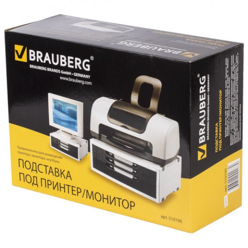 Подставка для принтера или монитора BRAUBERG, с 1 полкой и 3 ящиками, 380х275х150 мм, 510190
