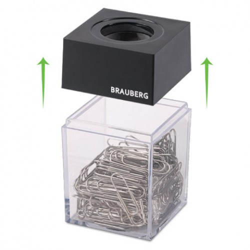Скрепочница магнитная BRAUBERG, 100 никелированных скрепок 28 мм, прозрачный корпус, черная крышка, 228400