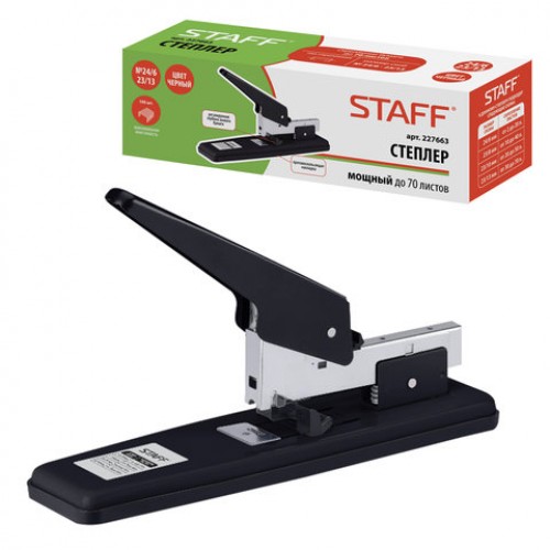 Степлер МОЩНЫЙ №24/6-23/13 металлический STAFF, до 70 листов, черный, 227663