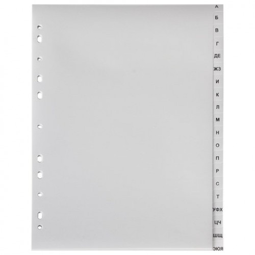Разделитель пластиковый BRAUBERG, А4, 20 листов, алфавитный А-Я, оглавление, серый, РОССИЯ, 225601