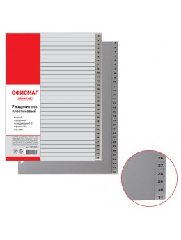 Разделитель пластиковый ОФИСМАГ, А4, 31 лист, цифровой 1-31, оглавление, серый, РОССИЯ, 225605