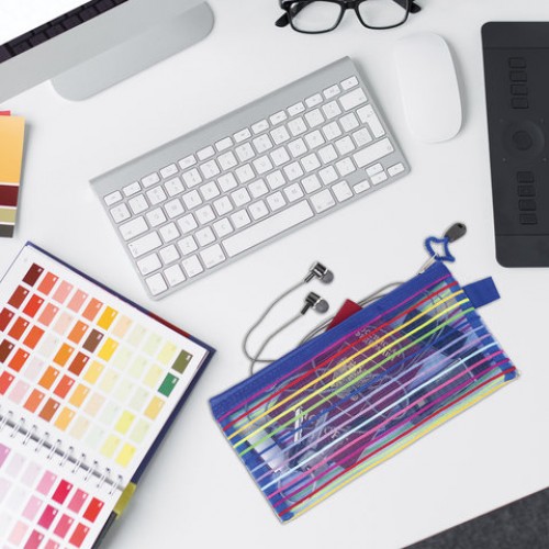 Папка-конверт на молнии МАЛОГО ФОРМАТА (255х130 мм), сетчатая ткань, BRAUBERG 'Stripes', 224048