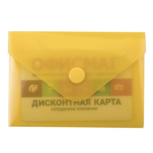 Папка-конверт с кнопкой МАЛОГО ФОРМАТА (74х105 мм), А7 (для дисконтных, банковских карт, визиток) прозр, желтая, 0,18 мм, BRAUBERG, 227324