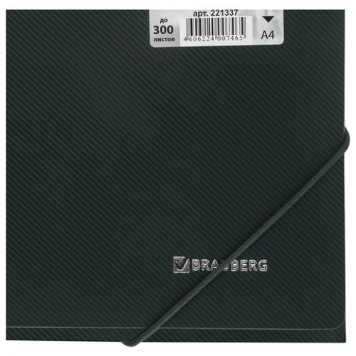 Папка на резинках BRAUBERG, диагональ, темно-зеленая, до 300 листов, 0,5 мм, 221337