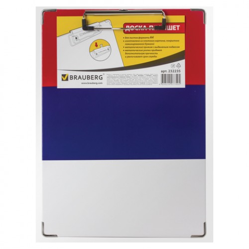 Доска-планшет BRAUBERG 'Flag' с прижимом А4 (226х315 мм), российский флаг, картон/ламинированная бумага, 232235