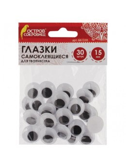 Глазки для творчества самоклеящиеся, вращающиеся, черно-белые, 15 мм, 30 шт., ОСТРОВ СОКРОВИЩ, 661310