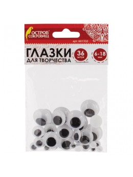 Глазки для творчества, вращающиеся, черно-белые, ассорти, 36 шт., ОСТРОВ СОКРОВИЩ, 661332