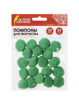 Помпоны для творчества, зеленые, 25 мм, 20 шт., ОСТРОВ СОКРОВИЩ, 661447