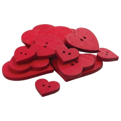 Пуговицы декоративные 'Сердце', дерево, 12 шт., ассорти, красные, ОСТРОВ СОКРОВИЩ, 661421