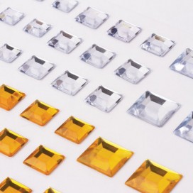 Стразы самоклеящиеся 'Квадрат', 6-15 мм, 80 шт., цвет золотой/серебристый, на подложке, ОСТРОВ СОКРОВИЩ, 661394
