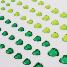 Стразы самоклеящиеся 'Сердце', 6-15 мм, 80 шт., зеленые/салатовые, на подложке, ОСТРОВ СОКРОВИЩ, 661401