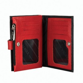 Портмоне женское FABULA, 110х130 мм, натуральная кожа, кнопка, черное с красным, PJ.186.BK