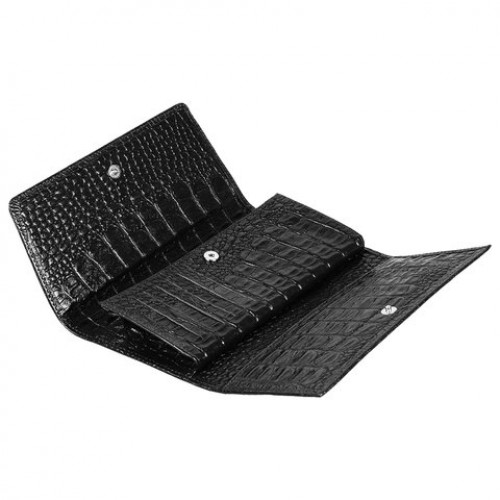 Портмоне женское FABULA, 185х95 мм, натуральная кожа, скрытая кнопка, крокодил, черное, PJ.160.КМ
