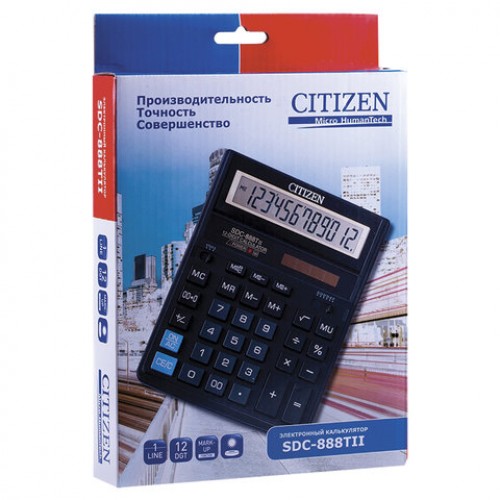 Калькулятор настольный CITIZEN SDC-888TII (203х158 мм), 12 разрядов, двойное питание