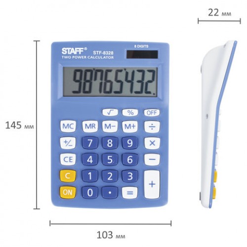 Калькулятор настольный STAFF STF-8328, КОМПАКТНЫЙ (145х103 мм), 8 разрядов, двойное питание, ГОЛУБОЙ, 250294