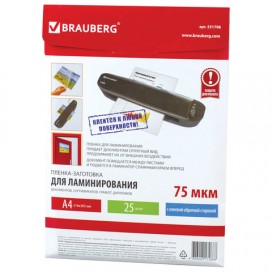 Пленки-заготовки для ламинирования НА КЛЕЕВОЙ ОСНОВЕ, А4, КОМПЛЕКТ 25 штук, 75 мкм, BRAUBERG, 531798