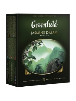 Чай GREENFIELD (Гринфилд) 'Jasmine Dream' ('Жасминовый сон'), зеленый с жасмином, 100 пакетиков в конвертах по 2 г, 0586-09