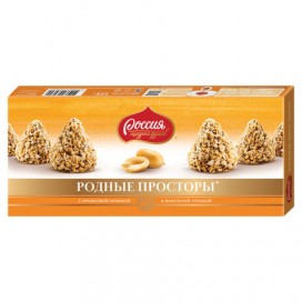 Конфеты шоколадные РОДНЫЕ ПРОСТОРЫ, с вафельной крошкой, картонная коробка, 125 г, 12285543