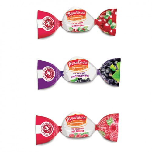 Конфеты-карамель ЖИЛИ-БЫЛИ, леденцовая, мини, ассорти клюква/смородина/малина, 200 г, пакет, ПР6883