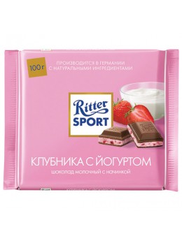 Шоколад RITTER SPORT 'Клубника с йогуртом', молочный с начинкой, 100 г, Германия, RU2376