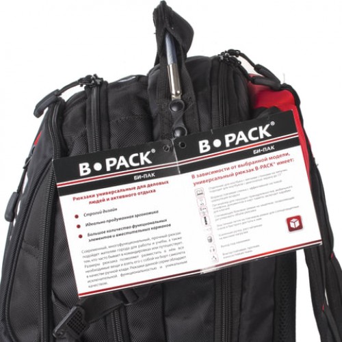 Благодаря многофункциональности рюкзака B-PACK, вы можете легко организовать свои вещи, положив ключи, мобильный телефон и еще тысячу мелочей в специальный карман-органайзер. Кроме удобного органайзера рюкзак имеет специальное выделенное отделение для ноутбука с диагональю до 15” и документов; ещё одно вместительное основное отделение с карманом для плеера и выходом для наушников; два передних кармана и два боковых кармана - один затягивающихся шнурком с удобными фиксаторами, а второй на молнии. Основное отделение рюкзака очень вместительное.