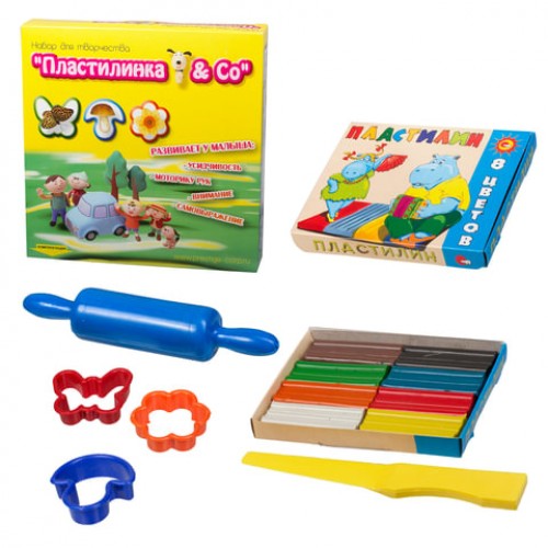 Набор для творчества ПРЕСТИЖ 'Пластилинка и Ко', пластилин 8 цветов, 3 формочки, скалка, нож