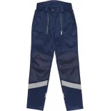 - на нижней части в области колена (изнутри) - усилительные накладки в виде кармана для наколенника с горизонтальным входом сверху